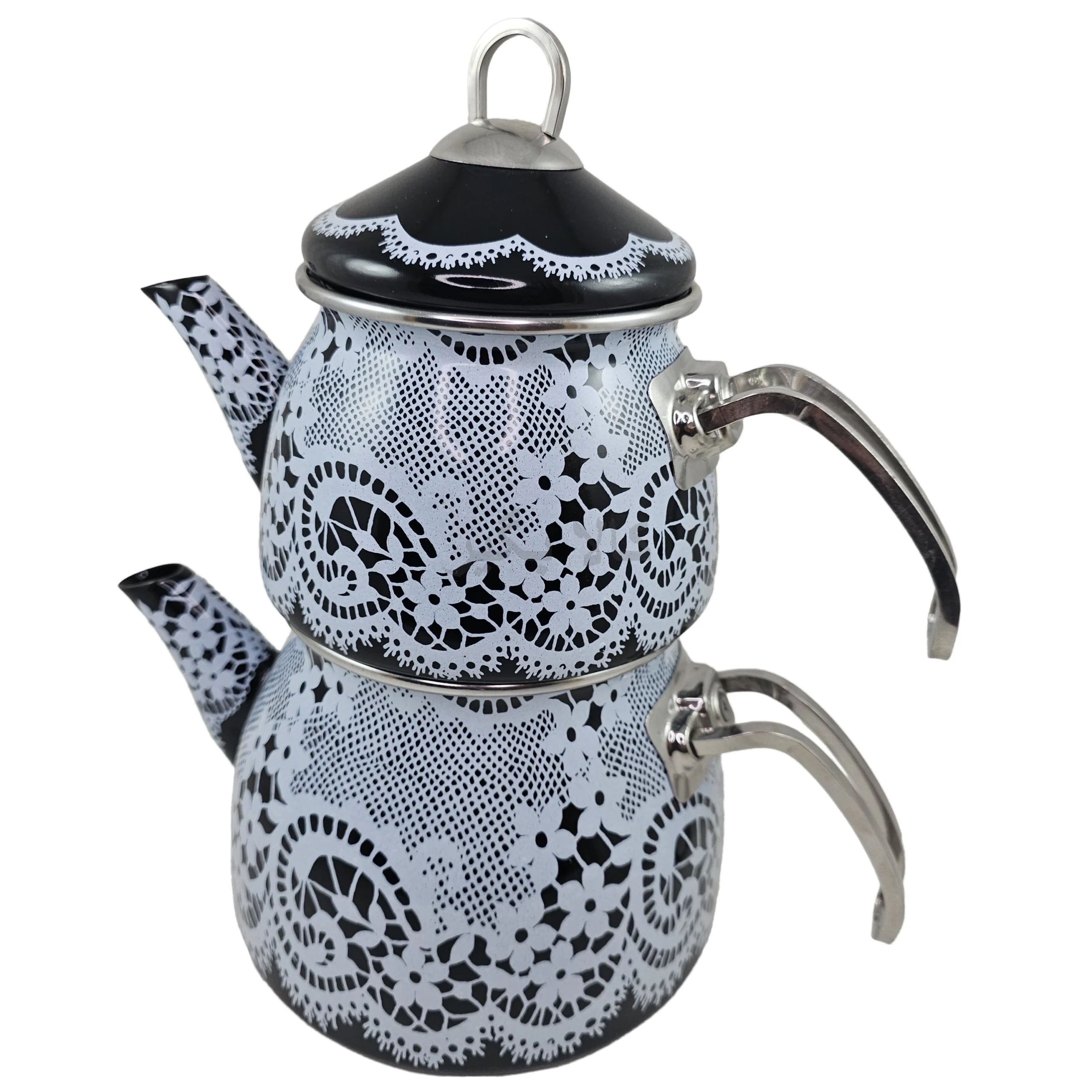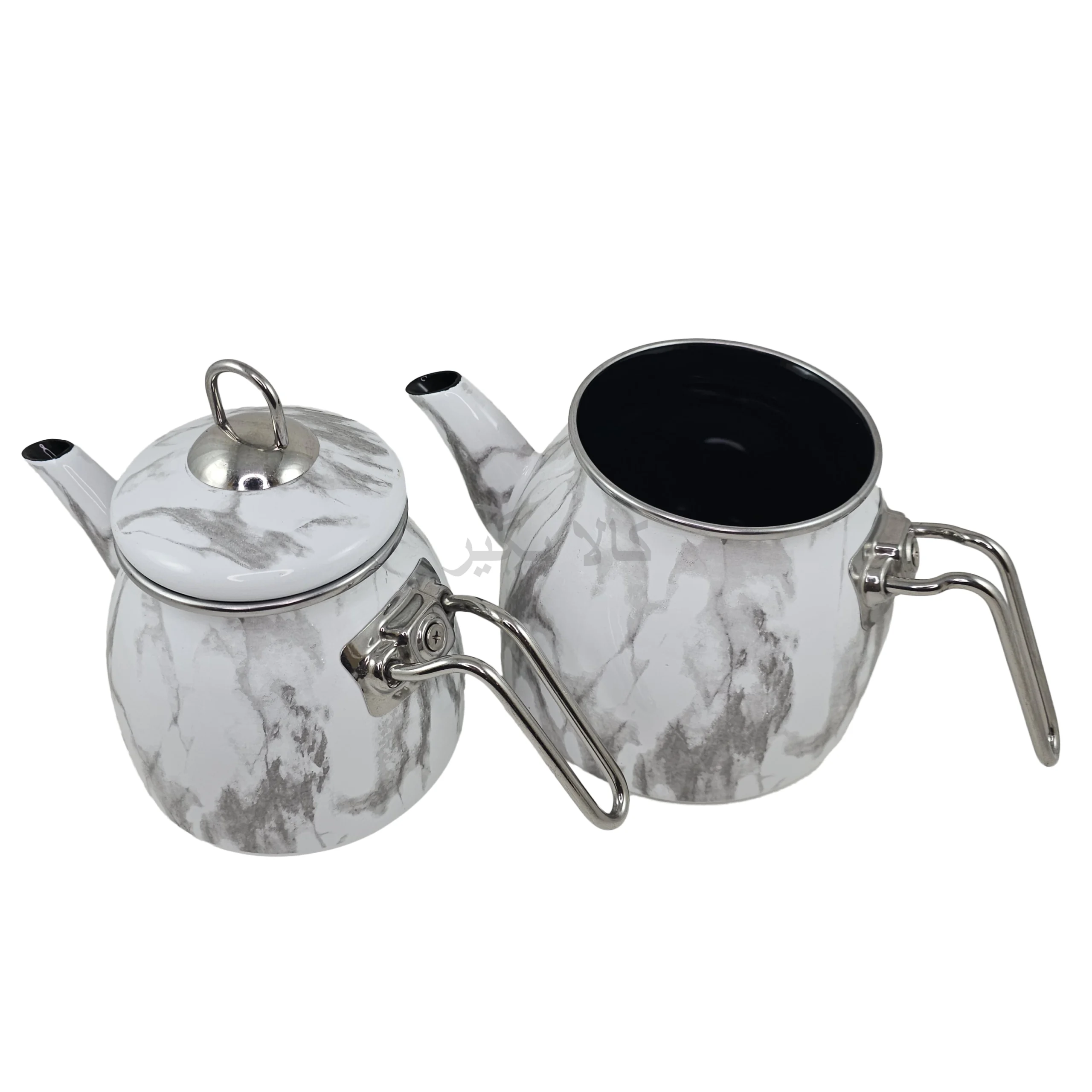 • بدنه لعابی: لعاب سطح کتری و قوری باعث می‌شود گرما یکنواخت توزیع شود و تماس مستقیم فلز با مواد غذایی کاهش یابد. لعاب همچنین ظاهری شفاف و رنگ‌پذیری بهتر فراهم می‌کند.